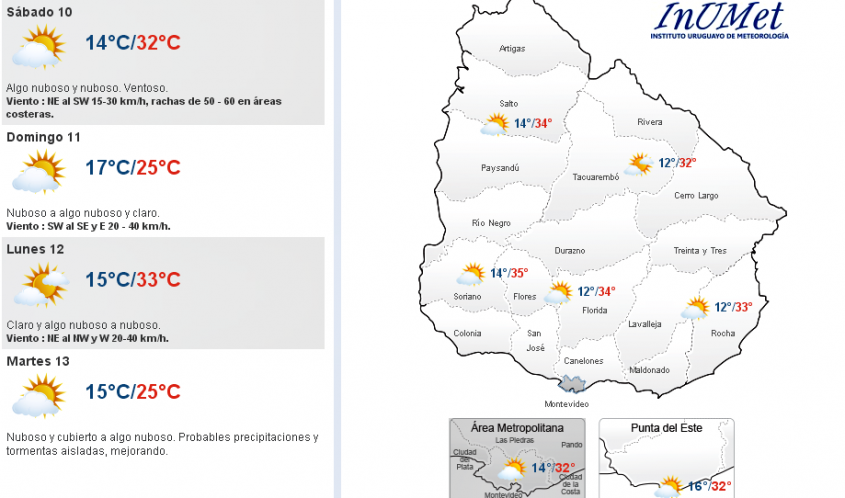 Viento : NE al SW 15-30 km/h, rachas de 50 - 60 en áreas costeras.