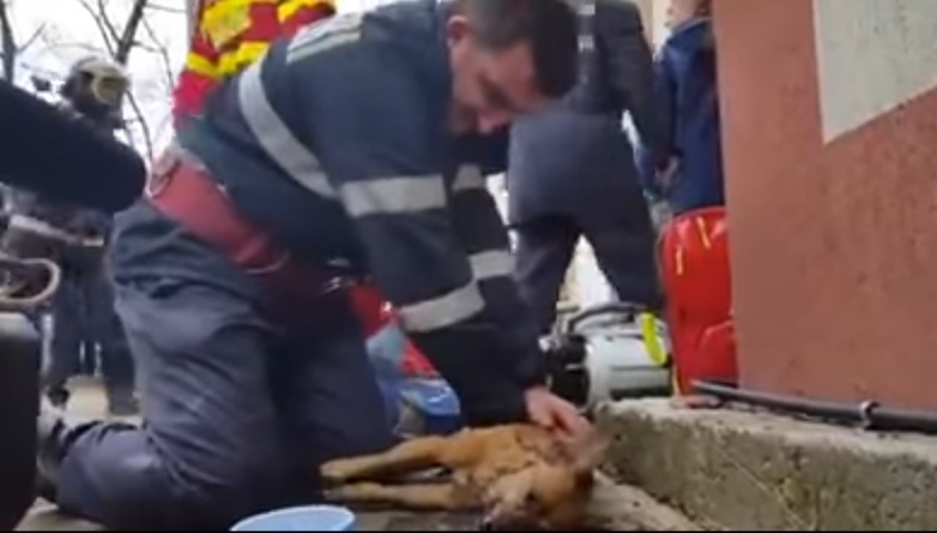 Tras rescatar al dueño del animal de su apartamento en llamas, Mugurel Costache, un joven bombero de Pitesti (a 120 kilómetros al noroeste de Bucarest) también asistió a la mascota que yacía inconsciente, intoxicada por el humo.