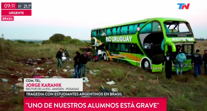 "Son cuatro víctimas, tres chicos de (la ciudad argentina) de Oberá y la coordinadora del grupo. Un alumno está grave", dijo al canal Todo Noticias Jorge Karanik, rector de la escuela Jansen de la ciudad de Posadas (1.000 km al noreste de Buenos Aires).