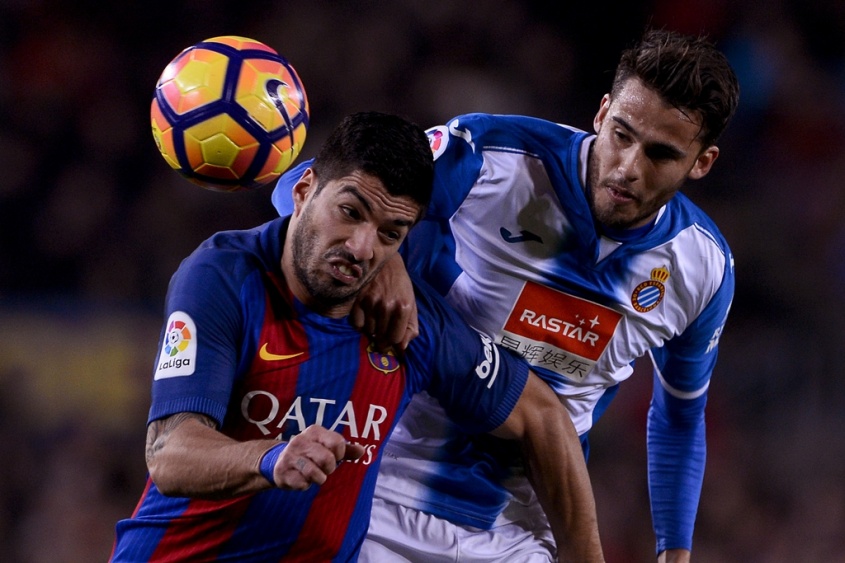 En el derbi barcelonés en el Camp Nou, los locales empezaron a encarrilar el partido en el minuto 18. Andrés Iniesta envió un balón largo que el uruguayo Suárez controló según bajaba para definir a continuación frente a Diego López.