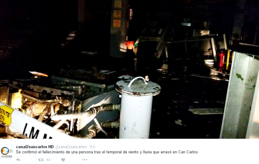 Se confirmó el fallecimiento de una persona tras el temporal de viento y lluvia que arrasó en Can Carlos. pic.twitter.com/1YOqheFiGS