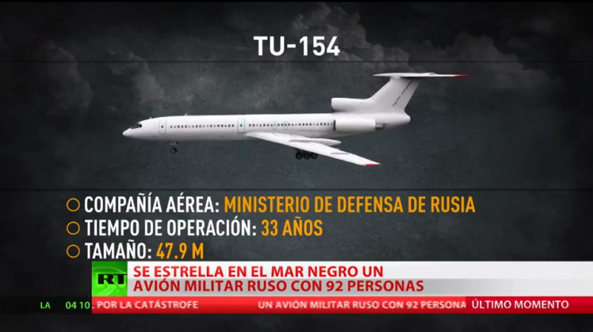 Según el ministerio de Defensa, el Tupolev Tu-154 desapareció de los radares a las 05H27 (02H27 GMT), dos minutos después de despegar del aeropuerto de la localidad balnearia de Sochi, en el municipio de Adler, a orillas del mar Negro. Se dirigía a la base aérea de Hmeimim, cerca de Latakia, en Siria.