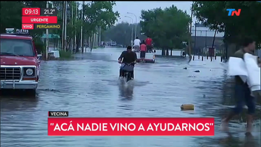 "Es difícil entrar en algunos lugares por el nivel del agua. Es un momento muy triste para los vecinos", afirmó al canal TN, Javier Martínez, alcalde de Pergamino.