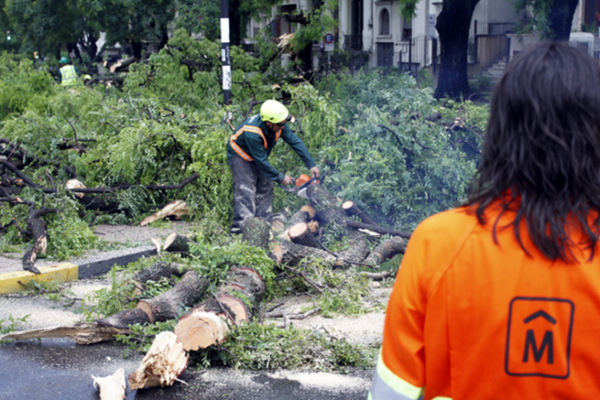 Siete camiones y dos palas trabajaron en el municipio CH. Fueron necesarios 137 viajes para depositar troncos y ramas en el polo logístico del parque Batlle.