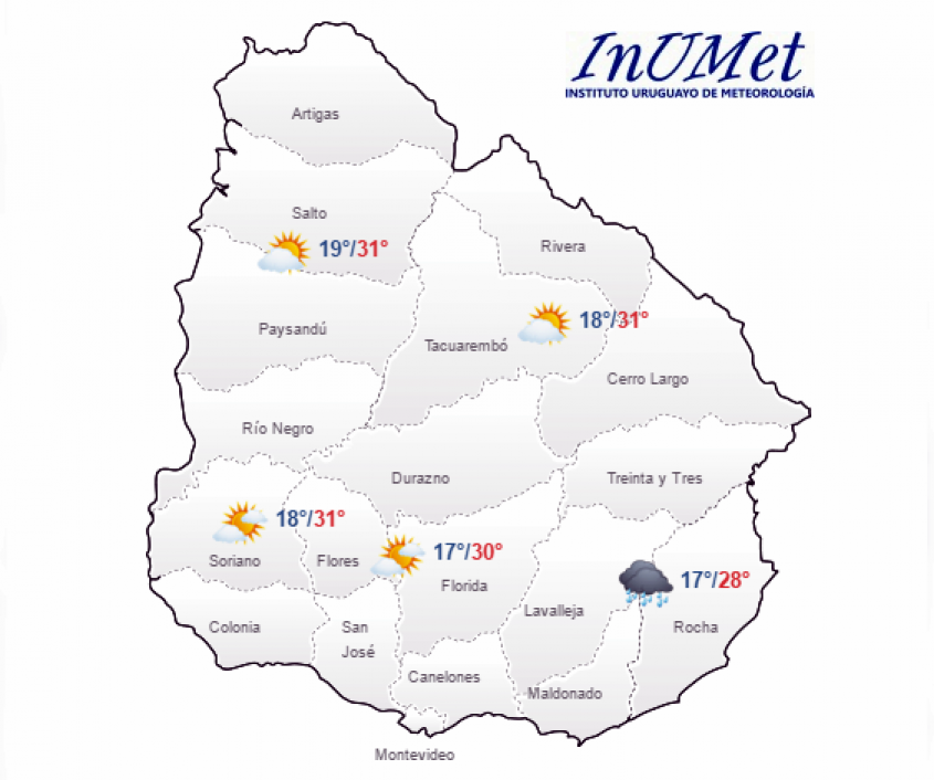 La mínima anunciada 19°C y la máxima 31°C, con vientos del W al SW 15 - 40 km/h.