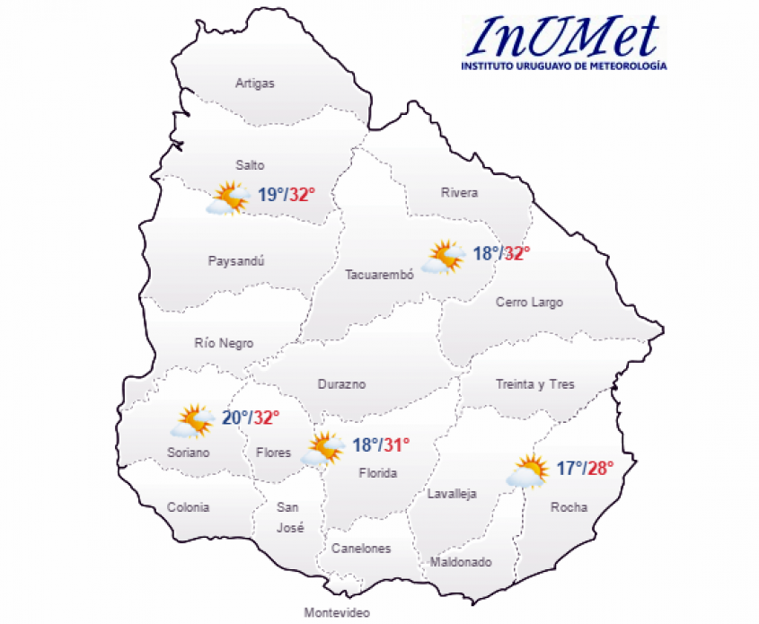 En Montevideo y Área Metropolitana prevén tiempo templado a cálido con cielo nuboso a algo nuboso y claro. Neblinas matinales.