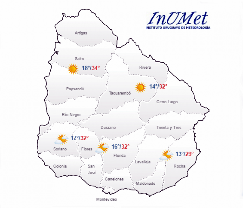 En tanto para la zona Norte del país el Inumet pronostica tiempo fresco a caluroso con cielo algo nuboso y claro.