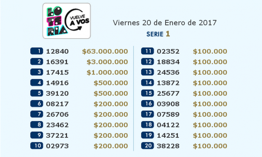 Se realizó este viernes el sorteo de la revancha de reyes con un premio mayor de 63 millones de pesos. El número favorecido fue el 12.840.
