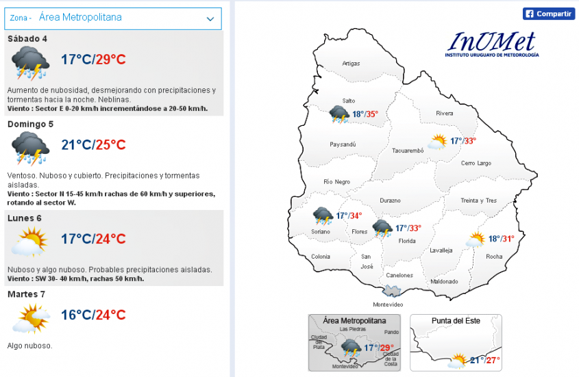 Viento : Sector N 15-45 km/h rachas de 60 km/h y superiores, rotando al sector W.