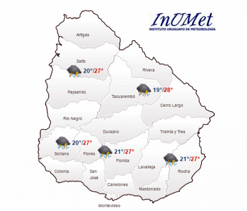 En tanto para Montevideo y Área Metropolitana se prevé tiempo templado con cielo cubierto. Precipitaciones y probables tormentas aisladas. Mejoras temporarias.