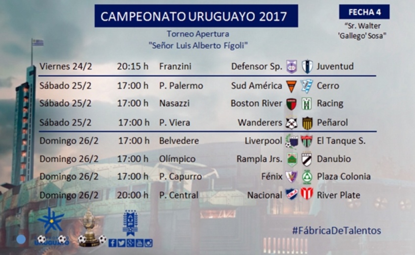 Con ocho encuentros se disputará la cuarta fecha del torneo Apertura, entre el viernes 24 y domingo 26 de febrero. El detalle de todos los partidos aquí.