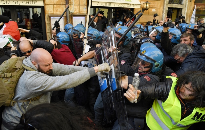 Durante la manifestación hubo agresiones y disturbios así como enfrentamientos con la policía por las calles del centro de capital italiana.