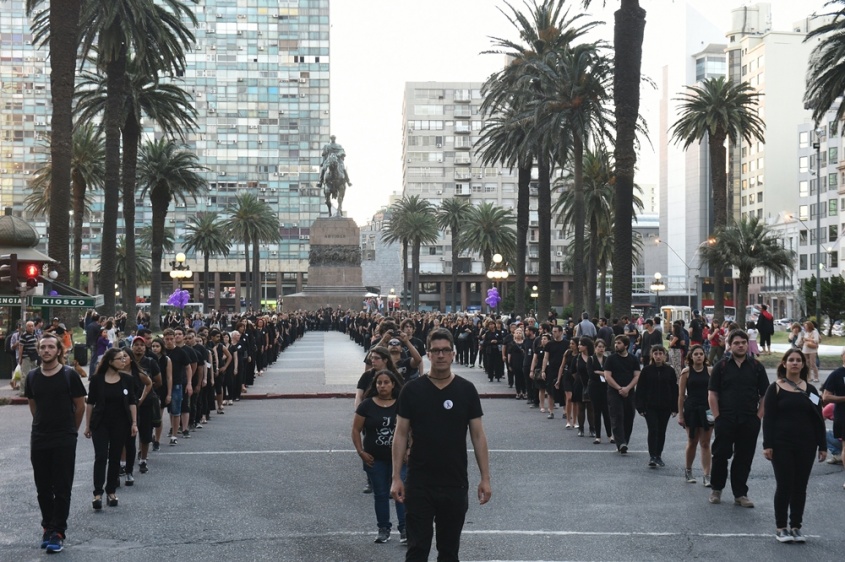 Luego marcharon hacia la Plaza de los Bomberos dónde leyeron una proclama e hicieron un “abrazo gigante”, según informó Telenoche.