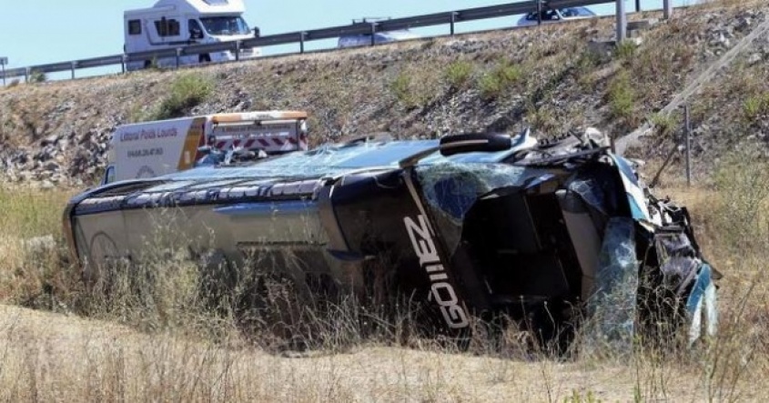 A causa de la colisión, ambos vehículos cayeron a una zanja a la vera de la ruta. Una veintena de ambulancias acudió al lugar para trasladar a los heridos.