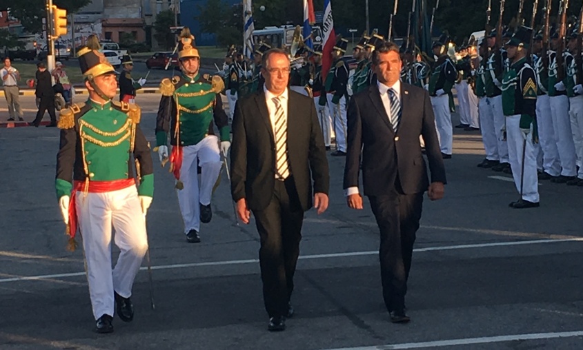 Como es tradicional, el Batallón Florida engalanó el acto con un desfile que rodeó la entrada con escalinatas del Palacio Legislativo.