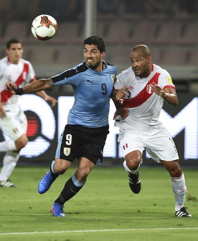La apertura del tanteador la hizo Uruguay, a través del volante Carlos Sánchez a los 29 minutos, tras una asistencia de Luis Suárez. Igualó 4 minutos después el delantero incaico Paolo Guerrero.