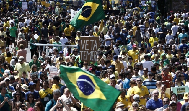 Miembros de sindicatos, estudiantes, profesores y otros grupos de izquierda se concentraron hacia el fin de la tarde en la céntrica Avenida Paulista de Sao Paulo, donde la manifestación reunió a decenas de miles de personas.