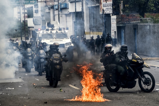 Los enfrentamientos ocurrieron cerca de la Plaza Altamira, en el este de Caracas, hasta donde las fuerzas de seguridad replegaron con gases lacrimógenos a una marcha de miles de opositores que protestaban en la autopista Francisco Fajardo contra la convocatoria de Maduro a una Asamblea Nacional Constituyente.