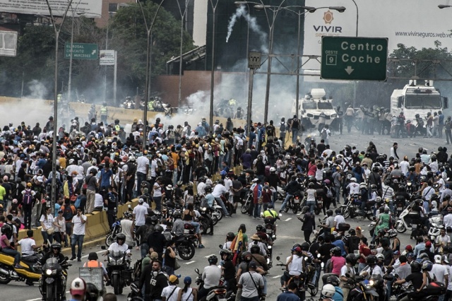 Ninguna de las marchas realizadas por la oposición desde el 1 de abril ha logrado llegar al centro de Caracas -donde están las sedes de los poderes públicos- pues son bloqueadas y dispersadas con gases lacrimógenos por las fuerzas de seguridad.