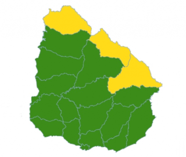 El nuevo aviso de Inumet afecta ahora a los departamentos de Artigas, Rivera y Cerro Largo.