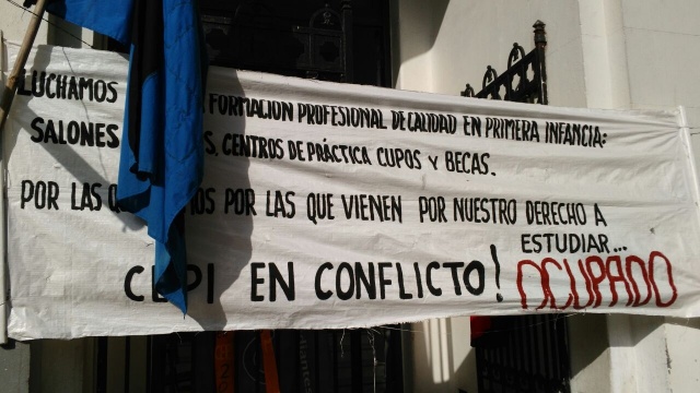 La medida que llevan adelante los estudiantes del Centro de Estudiantes de Primera Infancia y el Centro de Estudiantes de Magisterio es en reclamo de un 6% del PBI para la educación, mayor número de becas de docentes en todos los grados y de centro de práctica para la carrera.
