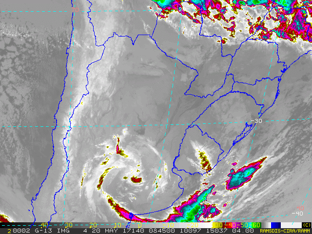 Foto: Inumet Imagen Satelital (Infrarroja térmica) GOES-13