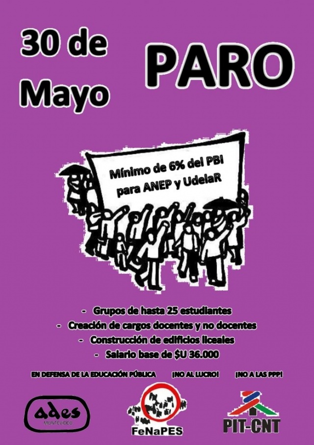 En tanto el próximo martes se realizará el paro nacional de docentes de Secundaria en reclamo del 6% del PBI para la Anep y Udelar.
