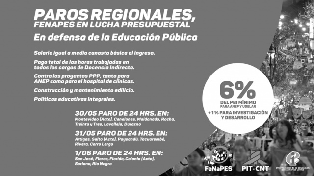 Los paros de 24 horas comenzarán el 30 de mayo en Montevideo, Canelones, Maldonado, Rocha, Treinta y Tres, Lavalleja y Durazno.
