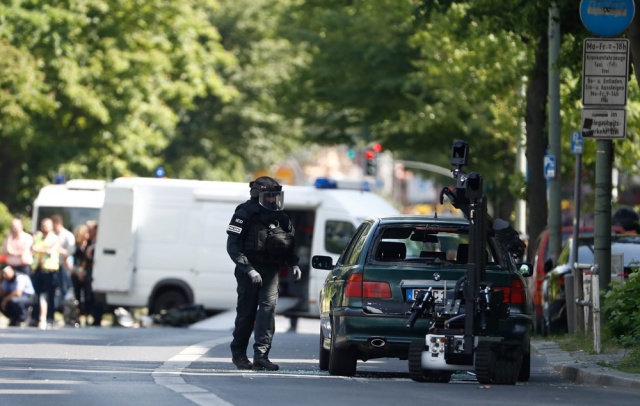 Unser Entschärfer schaut sich die verdächtigen Gegenstände, die der Roboter aus dem Fahrzeug geholt hat, nun persönlich an.#schoeneberg pic.twitter.com/nsG9fOXNrB