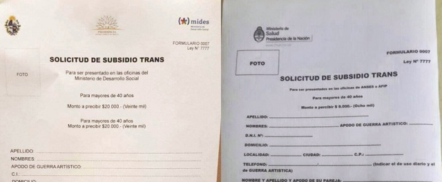 Según pudo averiguar Radio Monte Carlo, el formulario es una copia de otro, también falso, que comenzó a circular en Argentina cuando una legisladora kirchnerista propuso en 2014 la discusión de un proyecto de ley para conformar un subsidio para personas trans.