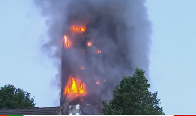 Testigos de la tragedia dijeron haber visto a gente cayendo o saltando desde la torre residencial de 120 departamentos y al menos un residente agitar un paño blanco desde una de las plantas del edificio.