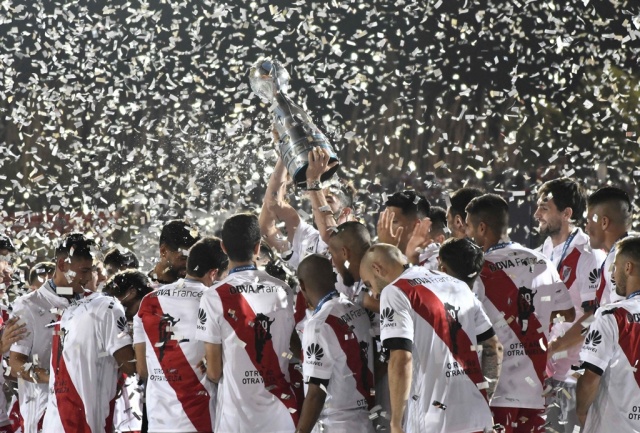Con una dolorosa eliminación en las semifinales de Copa Libertadores en manos de Lanús y relegado en la Superliga argentina, River se despidió de este año con un festejo y levantando un trofeo en un estadio Malvinas Argentinas de Mendoza colmado.