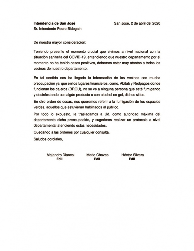 Tras conocerse el caso -el primero en ese departamento- el edil departamental nacionalista Héctor Silvera elevó una nota a las autoridades locales para implementar rápidamente la medida, teniéndose en cuenta el movimiento vihicular que se produce entre montevideo y la ciudad maragata, que tiene unos 40.000 habitantes.