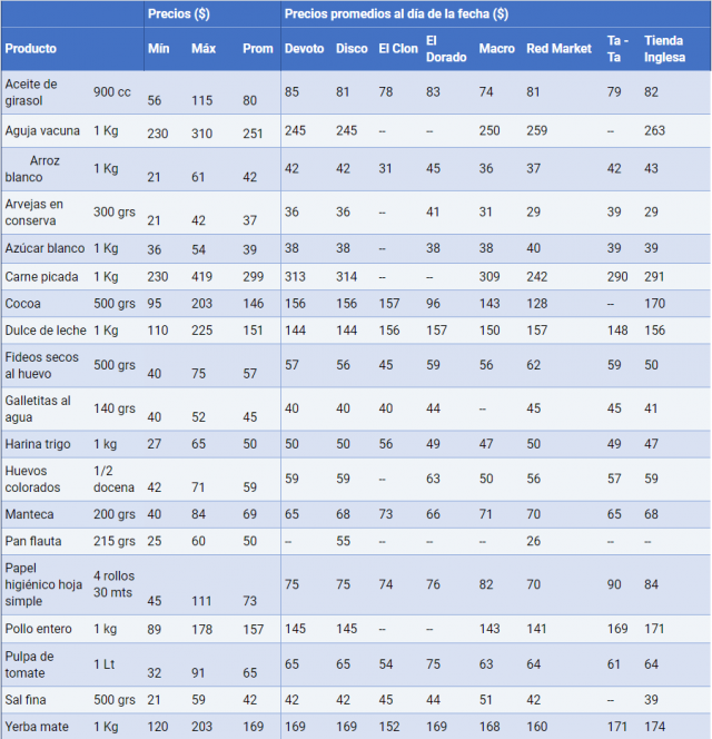 La misma es elaborada por el Sistema de Información de Precios al Consumidor (SIPC) y el Mercado Modelo.