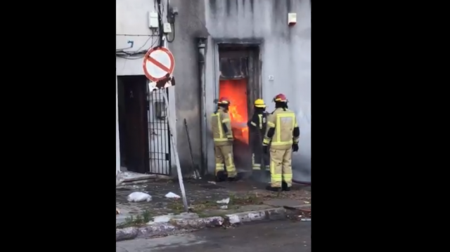 #AHORA @MonteCarlo930 continúa la intensa labor de los bomberos para tratar de apagar el incendio en una casa ubicada en Enrique Clay próximo a 8 de Octubre pic.twitter.com/NrjAqrJDBU