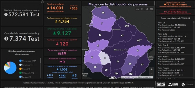 Se detectaron 526 nuevos casos de Coronavirus COVID-19 y se procesaron 7374 análisis, según informó el Ministerio de Salud Pública (MSP).