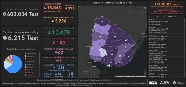 Hasta el momento son 143 las defunciones por COVID-19 en Uruguay.
