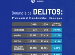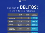 La secretaría de Estado señala que si se comparan los datos de diciembre de 2020 con diciembre de 2019, se destacan que los homicidios registran una baja de 44,44% . Los homicidios en diciembre de 2020 fueron 25 en comparación a los 45 homicidios de 2019.