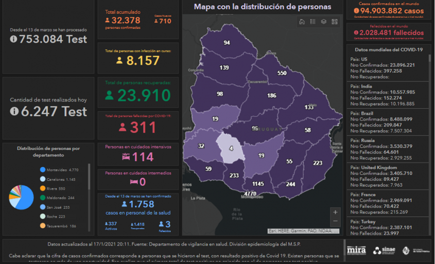 Hasta el momento son 311 las defunciones por COVID-19 en Uruguay.