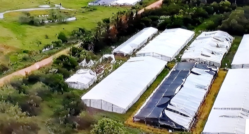 En Salto, la intendencia indicó que el fuerte temporal provocó daños en la zona de chacras de Villa Constitución, donde se constataron daños en invernáculos, algunos de ellos en plena producción.