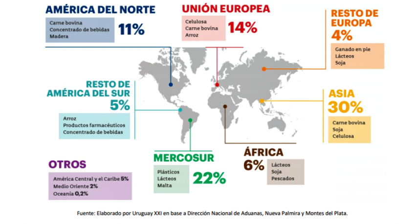 Esto se explica por el aumento en las exportaciones de trigo, madera, carne bovina, energía eléctrica, subproductos cárnicos y lácteos. En tanto que la celulosa, arroz y lana, tuvieron un impacto negativo en el mes, informó Uruguay XXI.