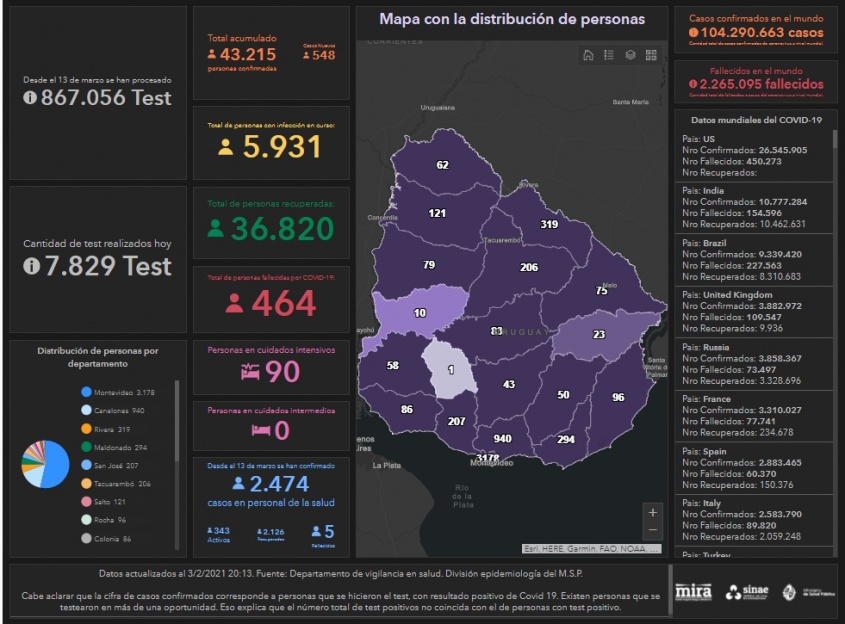 Hasta el momento son 464 las defunciones por COVID-19 en Uruguay.