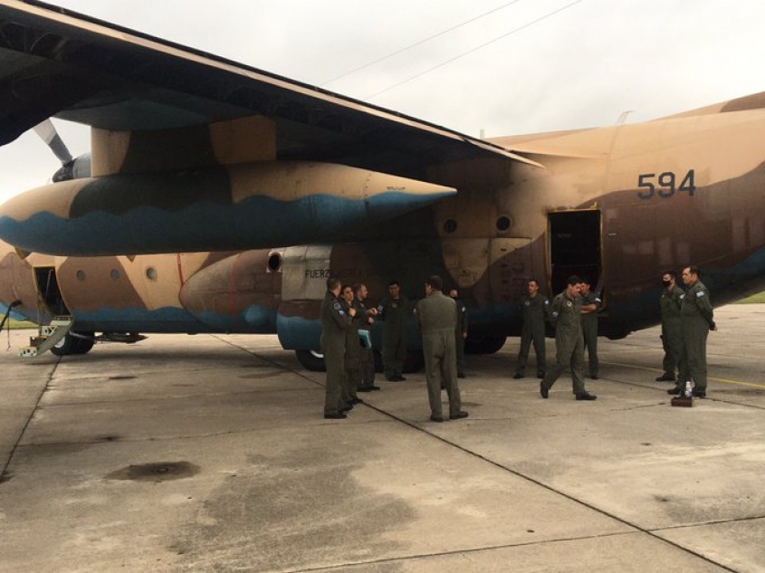 El comandante del Hércules, el cnel av Martín Campoamor, explicó el plan de vuelo a Estados Unidos, para traer al país los ultra freezers.