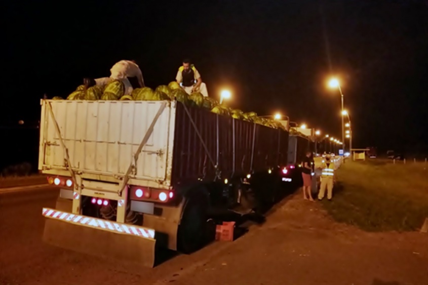 Al inspeccionarlo encontraron debajo del asiento y en el cajón de herramientas del remolque -debajo de un cargamento de sandías- 2.000 cajillas de cigarros de origen paraguayo.