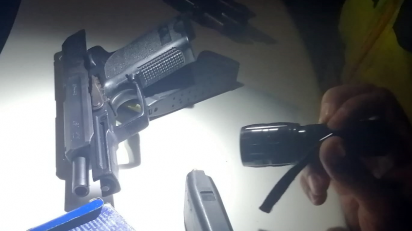 Los funcionarios realizaron una inspección dentro del vehículo, detectando dentro 2 pistolas marca "HK" ambas 9mm pertenecientes al Ministerio del Interior.