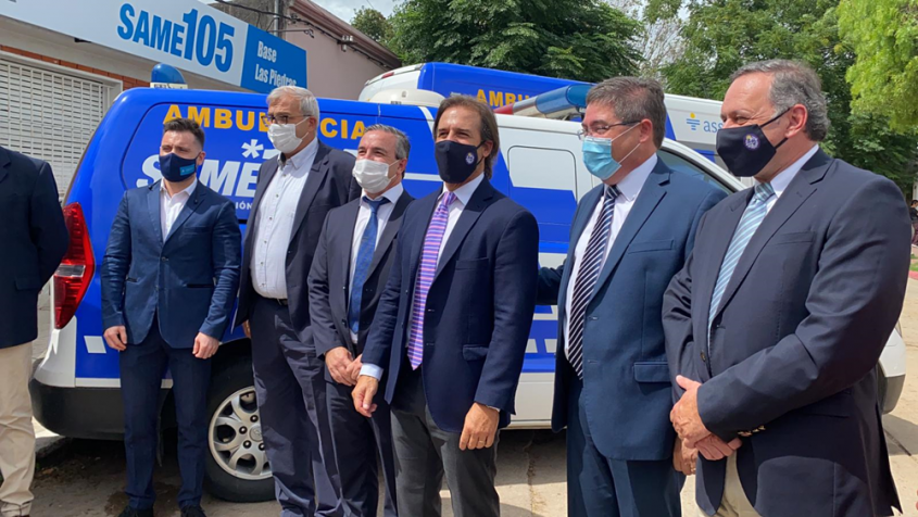En tanto, ahora Lacalle Pou participa del acto de presentación del nuevo CTI del Hospital de la misma ciudad canaria.