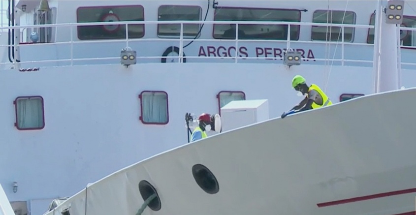 Como informáramos, el barco pesquero de bandera británica Argos Pereira, arribó el jueves al puerto de Montevideo con 54 tripulantes, de los cuales 28 resultaron positivos de COVID-19
