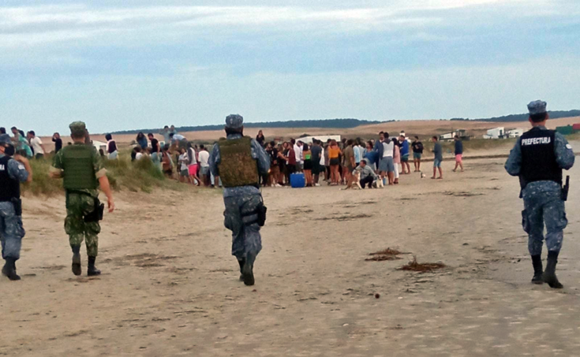 En Rocha, personal de la Prefectura de La Paloma en un operativo conjunto con Personal de Comando de Infantería de Marina, constató mediante dron, una aglomeración de unas 400 personas en la Playa San Sebastián de La Pedrera.
