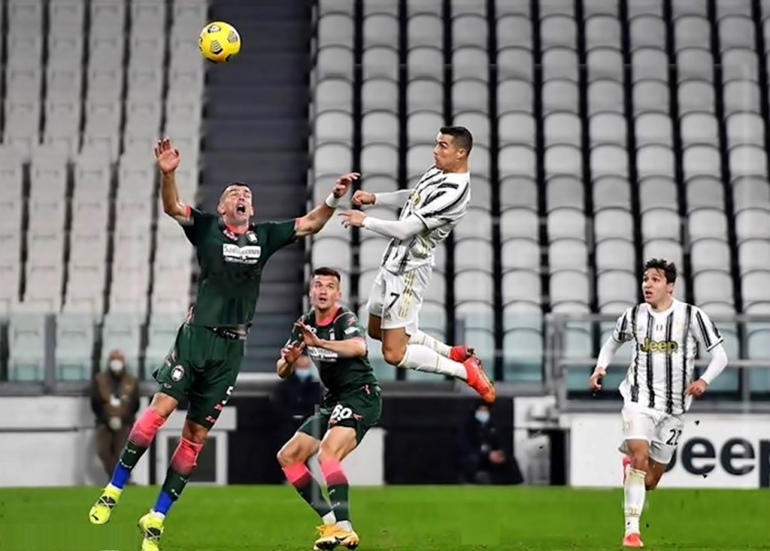 Cristiano encarriló el cómodo triunfo de los hombres de Andrea Pirlo con dos potentes testarazos en el 38 y en el 45, a centro del brasileño Álex Sandro y del galés Aaron Ramsey, lo que le permitió recuperar el mando de la tabla de los máximos artilleros con 18 goles, uno más que el belga Romelu Lukaku.