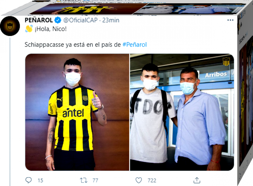 El delantero Nicolás Shiappacasse llegó a Montevideo para incorporarse a Peñarol. Hará cuarentena y comenzará a entrenar.